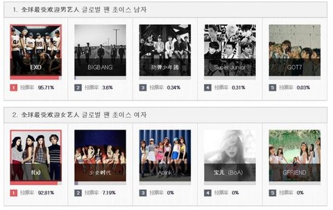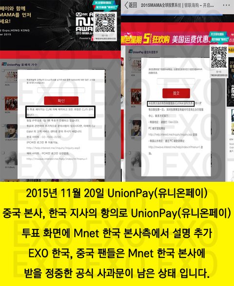중국팬들만 할수있는 유료 MAMA 투표 남자 1위 엑소 여자 1위 에프엑스