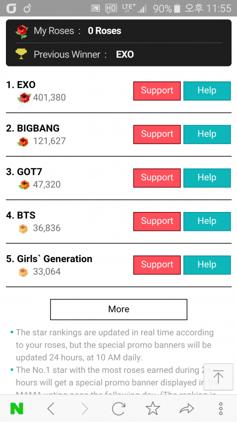 현재 MAMA 장미 투표 엑소가 1위여서 빅뱅갤러리에서 만든 자료글에