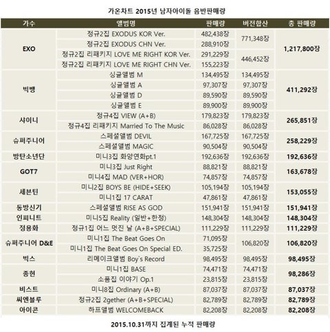 빅뱅팬들의 자료만 쓰는것이 정상인데 엑소팬들의 자료를