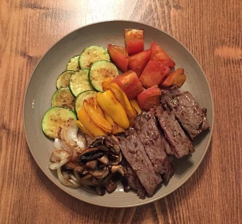 채끝살 구이에 애호박,양파,양송이버섯,파프리카,토마토만 구워 곁들여 먹었습니다