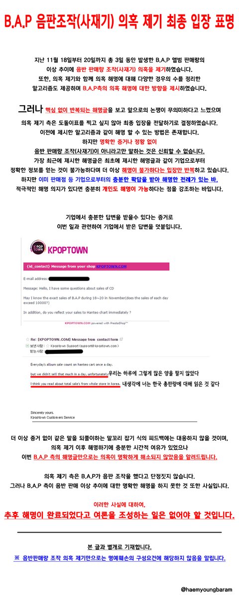B.A.P 사재기 의혹제기 최종 입장 표명