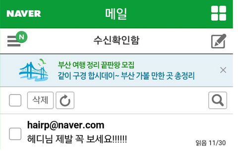 엑소 헤디한테 메일 보내면 읽는대
