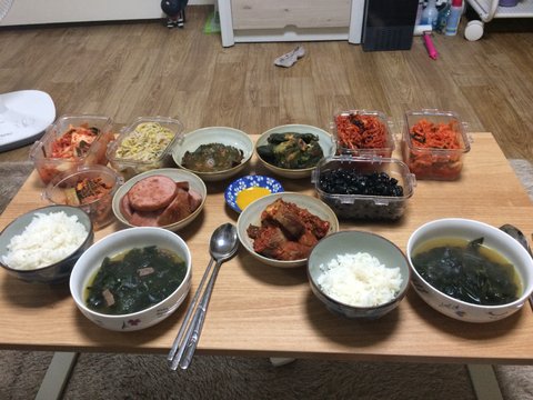 다음날 해장으로 먹었던 소고기미역국과 밑반찬