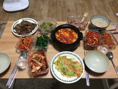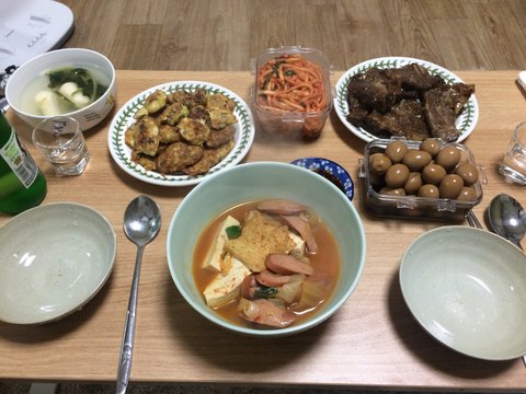 순두부찌개와 LA갈비, 호박부침개 부쳐서 야무지게 부어라마셔라 했던날