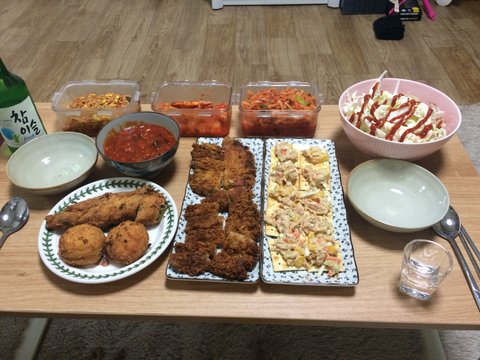 집에 있는 간단한 찬으로 친구 불러 술판ㅋㅋ