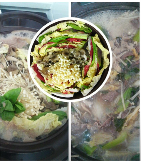 밀푀유나베.(배추청경채소고기 차곡차곡 넣어주고..팽이버섯숙주.느타리버섯데코하면되고.