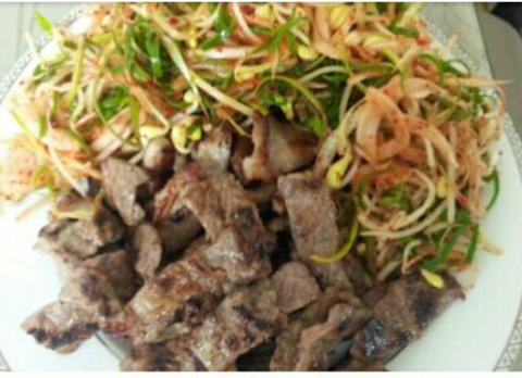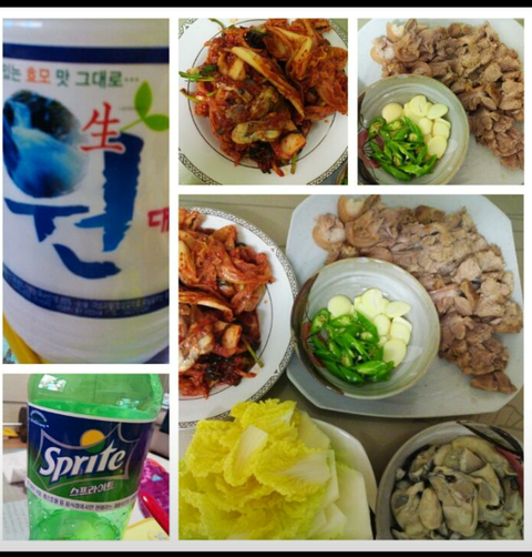 목살구이.파콩나물무침..(대패로해도 맛있어요..기름기빠지게구워놓고..패채콩나물.고추가루랑식초만넣어서 무쳐요.쌈무에싸먹음.간딱맞아요.)