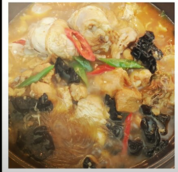 찜닭(아이들이목이버섯을좋아해서 목이버섯넣구..간장.고추가루.마늘다진것.청양고추두개.설탕.후추.당면.감자.)전문가가아니라..대충넣어가며 끓인후 간을봐서부족한거..또넣어가며 끓어요^^