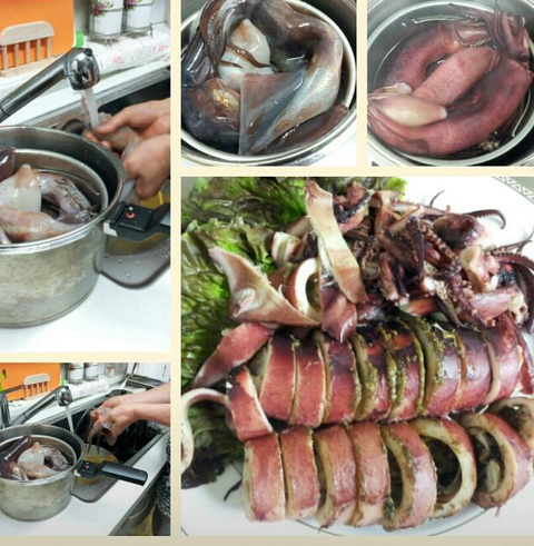 (걍오징어는 끓일수록질겨지는데..산오징어는 오래쪄도부들부들해요..산오징어 깨끗이헹궈서압력솥에..한시간쯤쪄야..내장까지.안터지게 먹을수있어요)