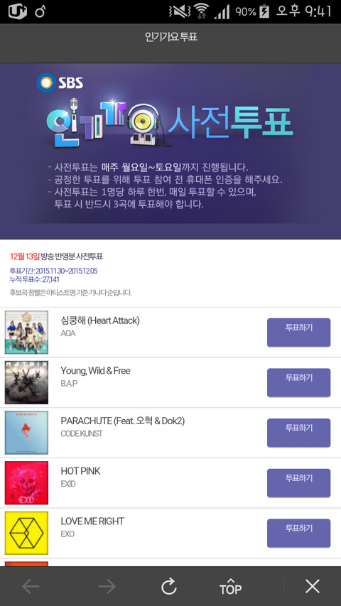 +우리 인가 투표권은 3개지만 한가수에 한번만 투표 가능해 그래서 런 한번 투표하고 나머지 두표는 아미들 마음대로!