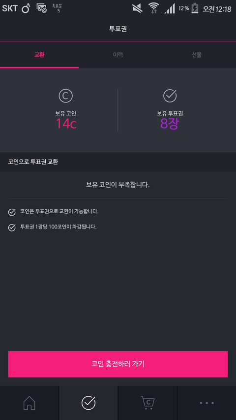 아니 도대체 왜 가위바위보랑 출석체크하는거 반이나 줄임... 어떻게 모으라고... 앱 까는거 새로 생긴 것도 다 했는데 투표권 모자라...