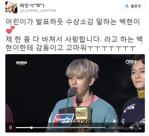 백현이 수상소감!! 축하해!!!