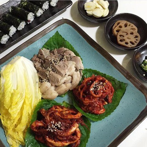 오징어순대 / 꽃게된장찌개 / 자두샐러드 /제육쌈밥