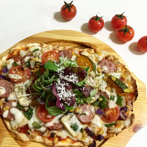 집에서 직접 반죽해서 도우까지 만들어봤어요 !