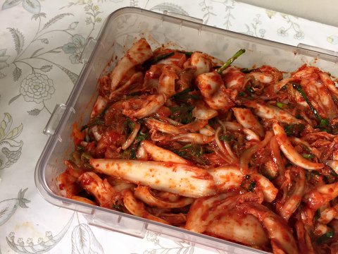 오징어무침 양념은 고춧가루2 / 고추장1 / 꿀1 / 간장1 / 참기름1 / 다진마늘조금 입니다!