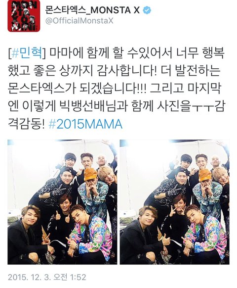 우리 몬스타엑스 예뻐해주셔서 감사합니다:) 민혁이 뿐만 아니라 나머지 멤버들도 잡지 인터뷰에서 롤모델 누구냐고 물어보면 빅뱅이라고 하는 빅뱅 팬들입니다! 모두 예뻐해주세요