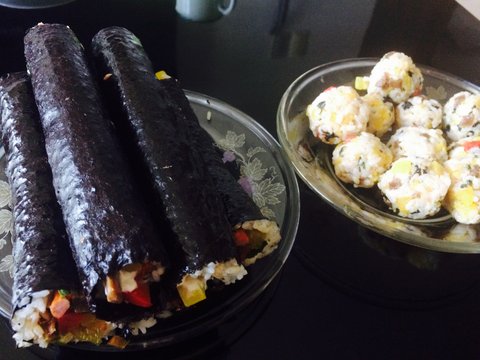 멸치김밥, 참치김밥, 멸추김밥 세 종류로 싸봄 남아서 주먹밥도함