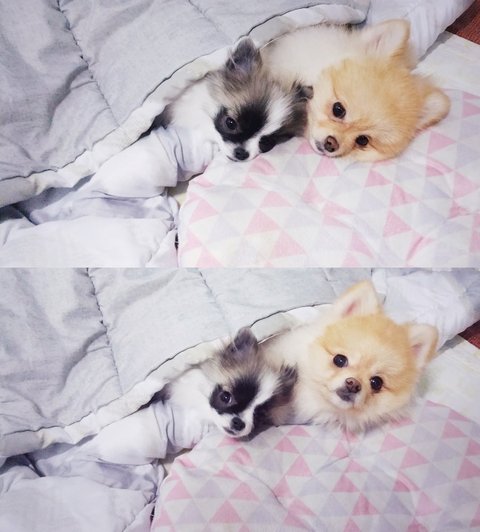 날이 추워지면서 둘 다 이불 속으로 파고들어요