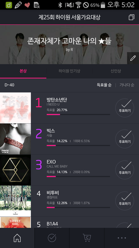 우리 이기려면 스밍 죽도록 돌리고 투표 미친듯이 해야돼 마마도 끝났고 어제 컴백무대 생각해봐 애들 자존심 다시세워줘야지ㅇㅇ 오늘 총공때 저번새벽같이 열심히했으면 좋겠어 안심하지마 멜뮤 탑텐 못들어같던거 상기해!