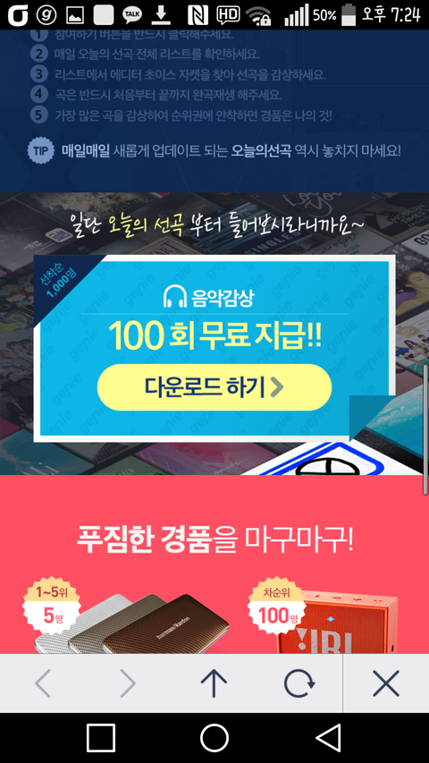 오늘의 선곡도 듣고 선물도 받자 저거 클릭한다음에 스크롤 쭉 내리면