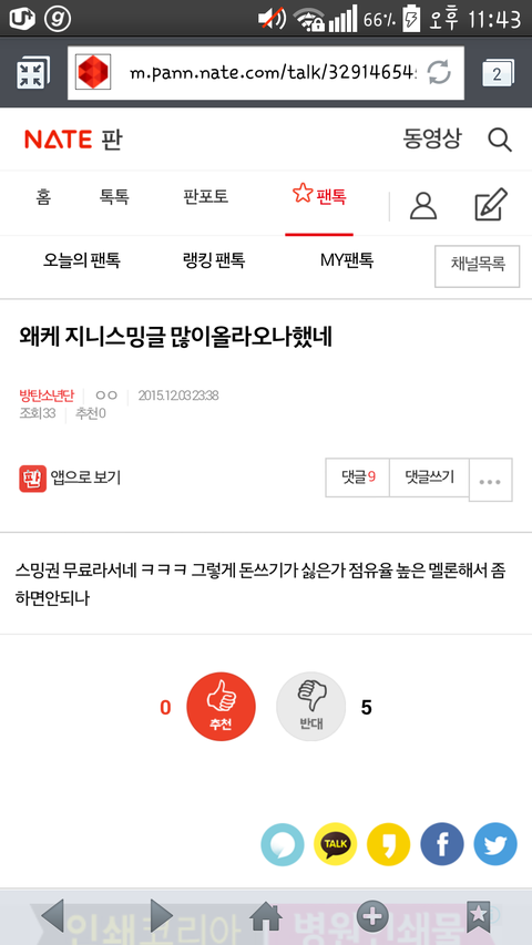 솔직히 스밍 돈아까워서 안돌리는게아니라 어쩔수 없이 못돌리는거잖아 그래서 이런기회 잡아서 무료스밍이라도 하려고 조급하게 팬톡에 질문하고 그래서 열심히 스밍하고있을거아니야 아미들지금..그니까 이런글 올리려면 말이라도 이쁘게하자..
