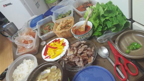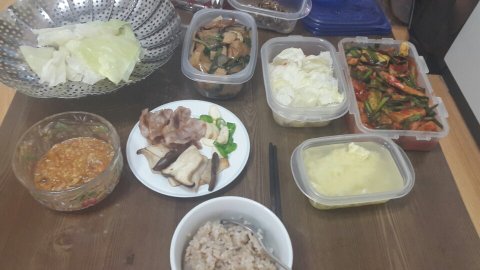 점심ㅡ현미밥에 쌈 위주의 고기식사 더이상 밥생각 안날때까지 엄청 먹음.