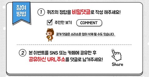 비밀 댓글을 정답을 쓰신 후 이 이벤트를 SNS나 카페에 공유하고