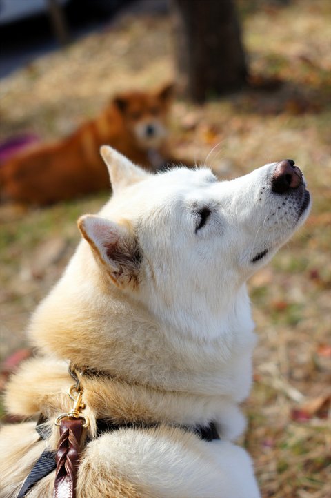 동네 신입인 진돗개 호구 용순이..심바랑 저 보면 반갑다고 난리에요.ㅎㅎ