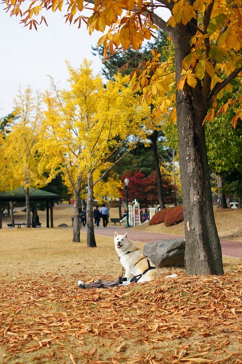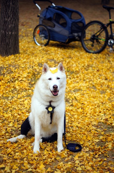 은행잎을 이마에 올리고.ㅎㅎㅎ