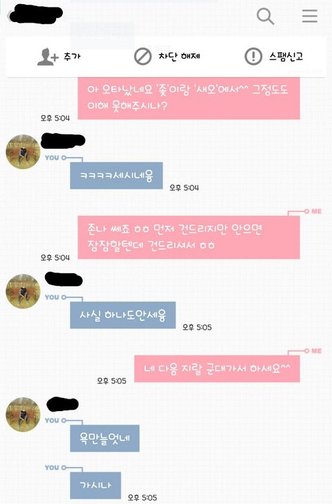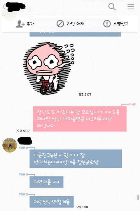결국 쌩까고 차단했는데 제가 장난을 못받아 치는건가요?