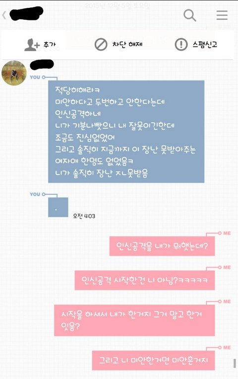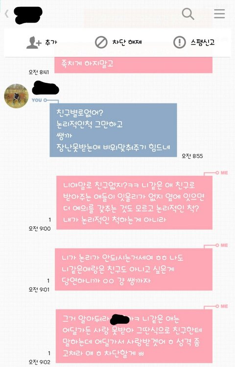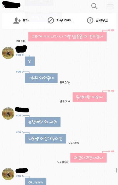 1학년때 부터 얘가 장난이 좀 심한 애이긴 했는데 나도 받아주다가 정도가 지나치면 안받아줬었거든요? 근데 다시 연락하는데도 ㅇ ㅈㄹ인거에요ㅋㅋㅋ 그래서 화내고 쌩깟는데 님들 보기엔 어떤지 얘기좀 해줘요