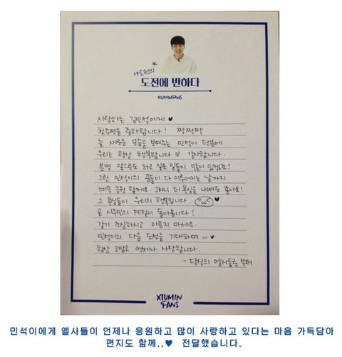 선물도 고급지고 usb 삼성걸로 준비한 센스하며 다 넘 고마운데 뭣보다 민석이한테 쓴 손편지 레알 감동이다ㅠㅠ