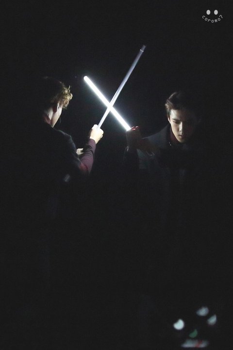 직캠이랑 움짤 찾아보고 종인이 광선검이 부러졌다는 말 듣고 유심히 봤어 불이 환하게 들어오는 검을 멋있게 휘두르고 마지막 대치 직전 검이 부러진걸 알수있지 종인이가 오른손에 쥔 광선검을 양손으로 쥐기 직전 휘어지는거 보이지 종인이 오른손이 칼날로 옮겨잡고 마지막 대치하기 직전 광선검 불도 꺼져버려