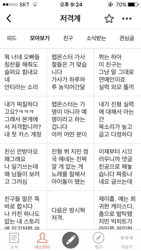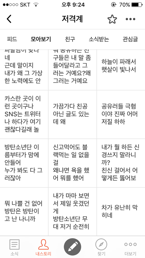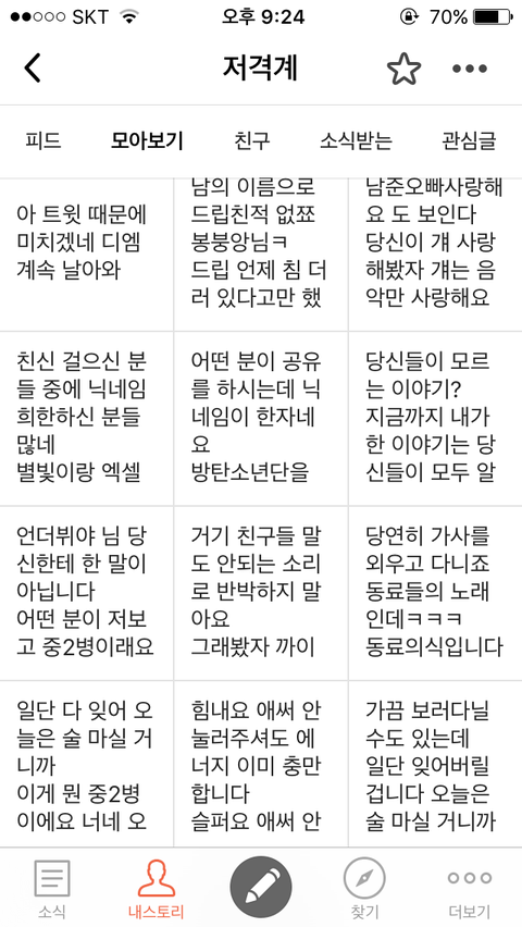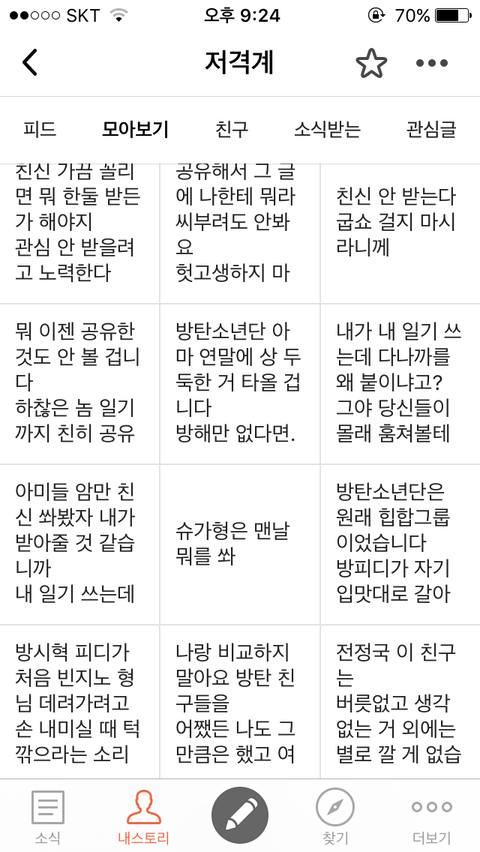 캌카오스톨이에 방탄동료라는 분이 글쓰고 계셔