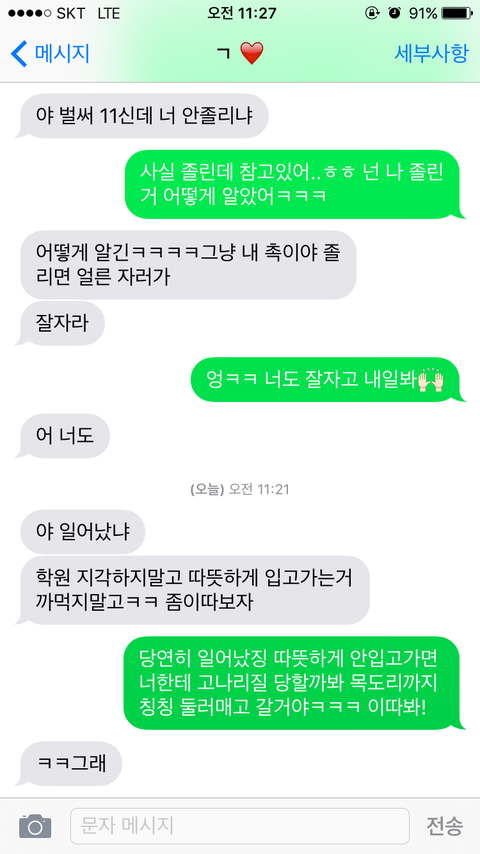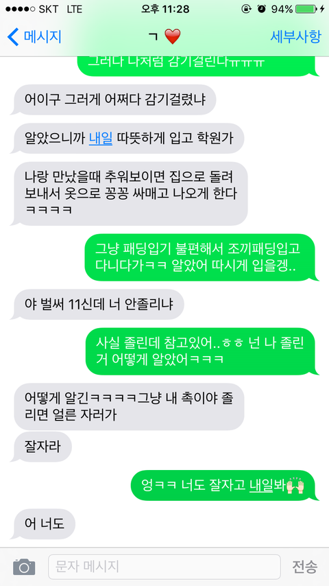 여기서 진짜 설렜다ㅠㅠㅠㅠㅠ 감기걸렸다고 따뜻하게 입고 학원가라는데 식상한 말이겠지만 그렇게