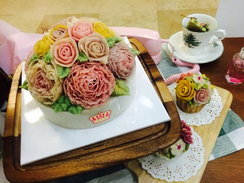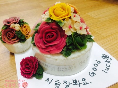 생일 케이크 :) 라넌큘런스 장미 아기장미로 셋팅