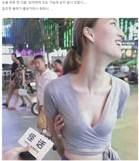 중국에서 유행하는 반대편 가슴만지기 sns놀이