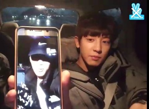 영상통화로 잠깐 출연했옹 민석이형 경수형잔다고..까매서 안보일거라고ㅋㅋㅋ 미챠ㅋㅋ ㅋㄱ