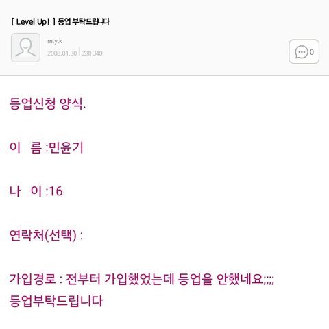 민윤기 16살때 힙합 카페에 ㅋㅋㅋㅋㅋ