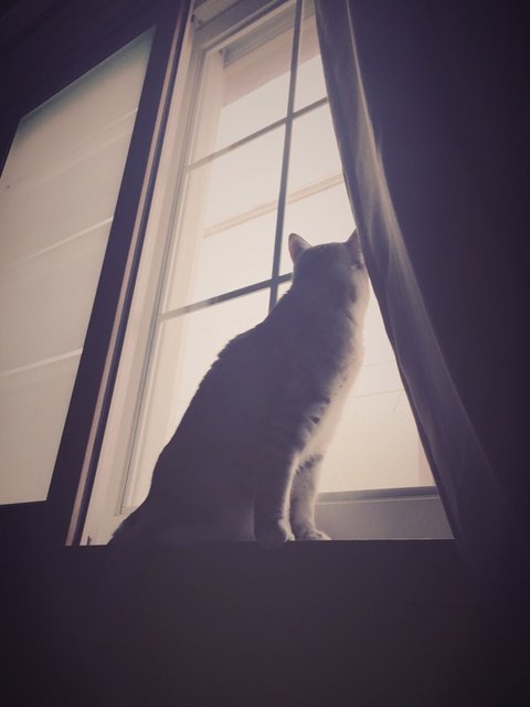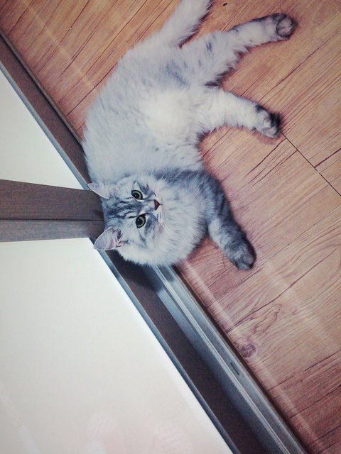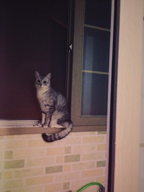 베란다 문을 열어줬더니 나가서 창밖을 보고 있어요. "꾸미야~"부르니까 쳐다보네요.