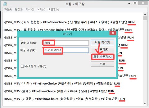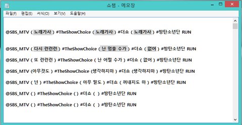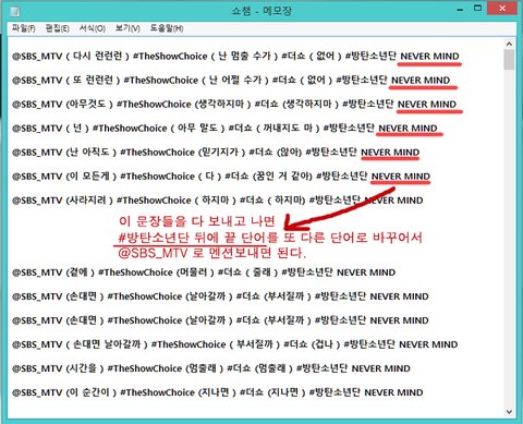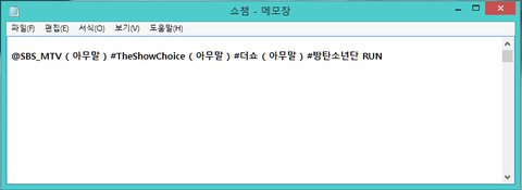 ( 내가 @SBS_MTV #더쇼  #방탄소년단 (아무말)  이런식으로 맨션 보내고 있었는데.