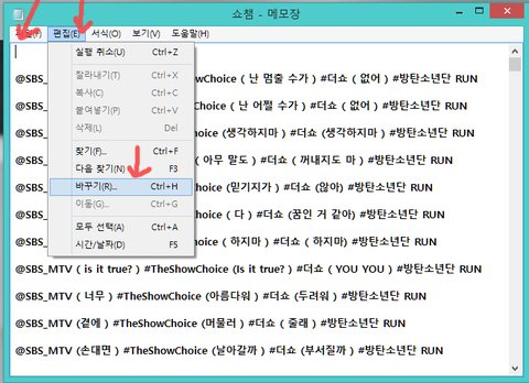 오른쪽엔 메모장 열어놓고 , 왼쪽엔 트위터에 들어간다음. 한줄씩 복사해서 넣어서 맨션 보냄.