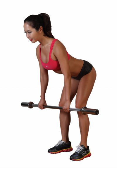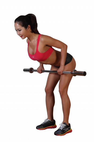 바벨을 앞에 놓고 발을 어깨너비로 벌린다. 등을 곧게 펴고 무릎을 굽힌다. 양손을 어깨너비로 벌려 오버핸드 그립으로 바를 잡는다. 긍이 바닥에 수평이 되도록 유지한 채 숨을 내쉬면서 바벨을 명치 쪽으로 힘차게 들어 올린다. 다시 숨을 들이쉬면서 바벨을 바닥 가까이 천천히 내린다.