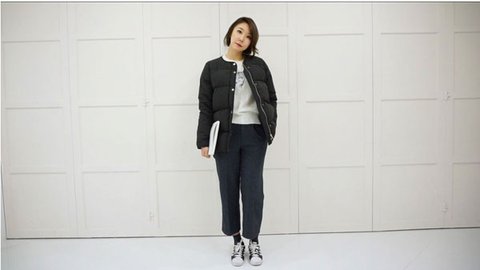 베이직 덕다운 패딩 + 버드니트 + 모직 슬랙스