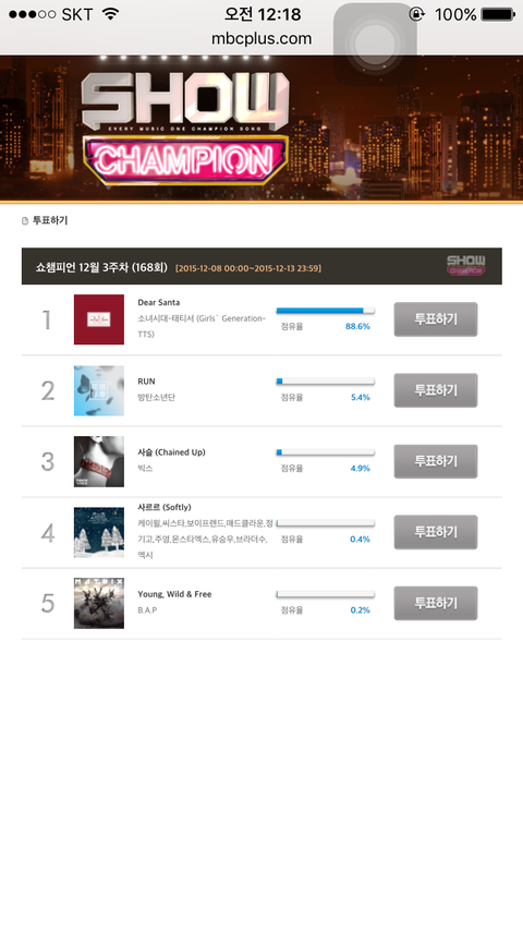 쇼챔도 투표 부탁해여 우리도 초반부터 차이 벌리자ㅠㅠ