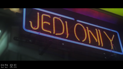 세니가 들어가는 곳이 나오고 JEDI ONLY라는 전광판이 나옴. 스타워즈 안봐서 찾아봤는디, 제다이 그러니까 스타워즈에 나오는 우주의 평화와 정의를 지키는 기사라고 함.