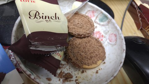 과자의 초콜릿상태 좀 봐주세요