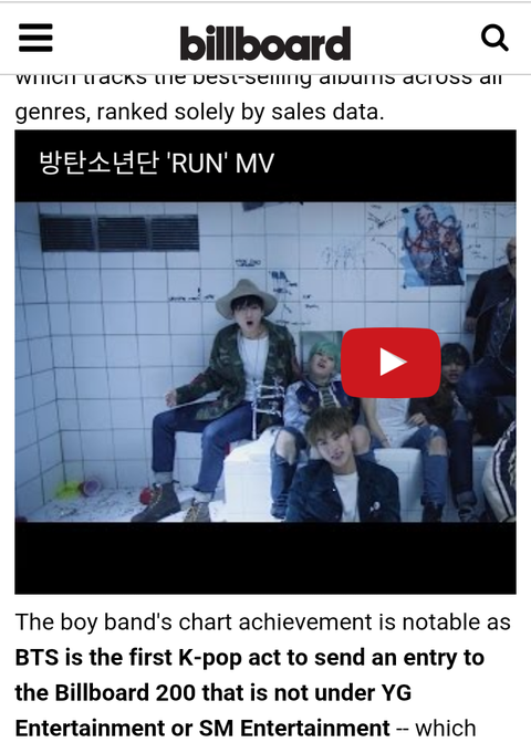 기사에 나와서 확실한건 스엠과 와쥐 소속가수가 아닌데 그 차트에 든건 방탄이 처음이래!