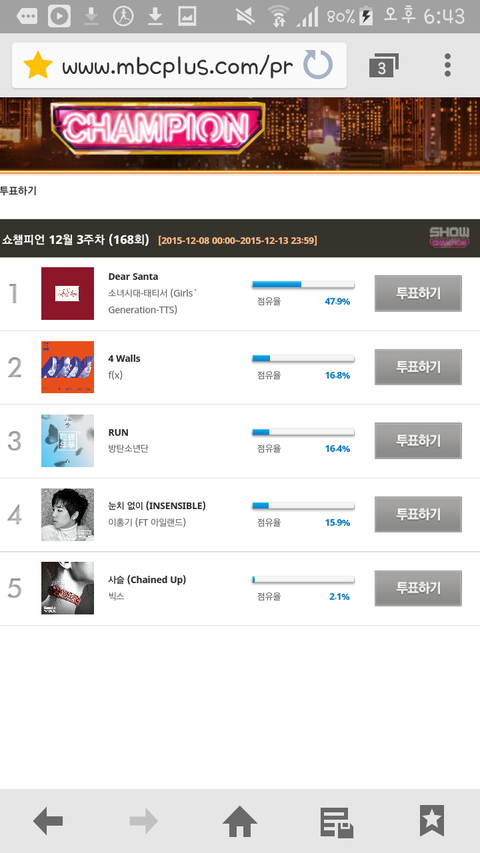 3위라고 ㅠㅠㅠㅠㅠㅠㅠㅠㅠㅠ진짜 투표하자 레알...부계 될 수 있으면 파서 하고 안 한 아미들도 빨리 투표 ㄱㄱ