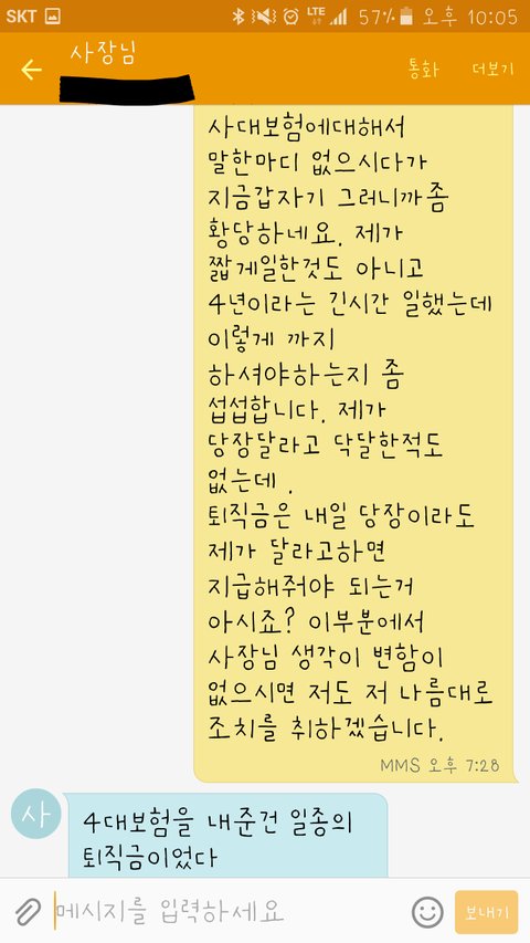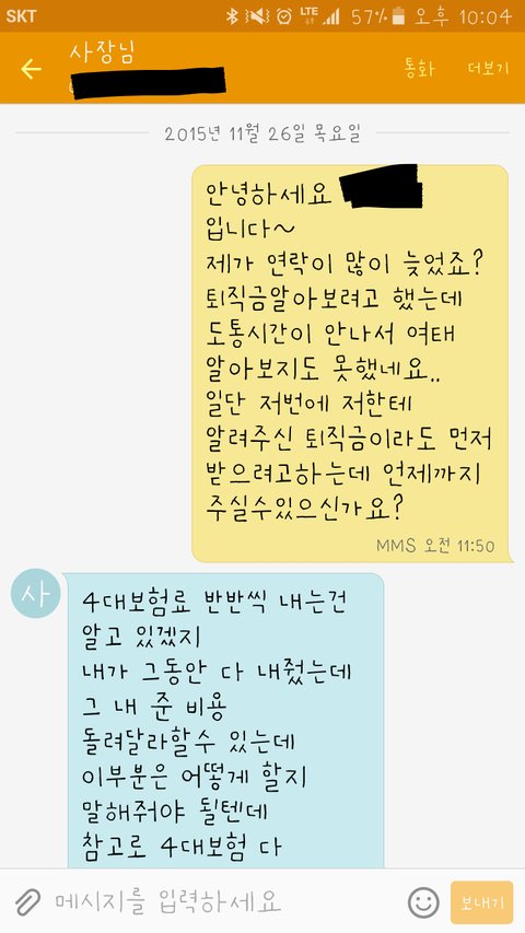 기다려도 연락없어서 문자한다고 퇴직금 언제까지줄수있냐고요.